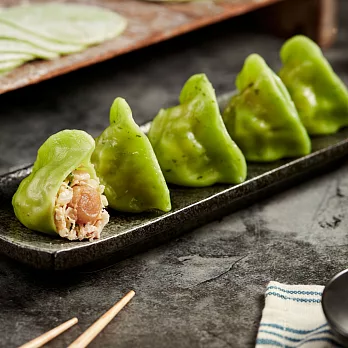 *以日本種蘿蔔葉榨汁特製的麵皮,搭配日本北海道進口的干貝與上等豬肉及高冷高麗菜等材料調製成之餡料包裹,濃郁的干貝香味,令人垂涎三尺,真是吃了還想再吃.